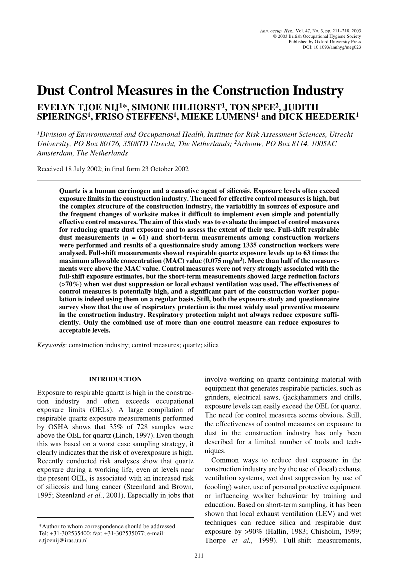 SPIERINGS1, FRISO STEFFENS1, MIEKE LUMENS1 and DICK HEEDERIK1