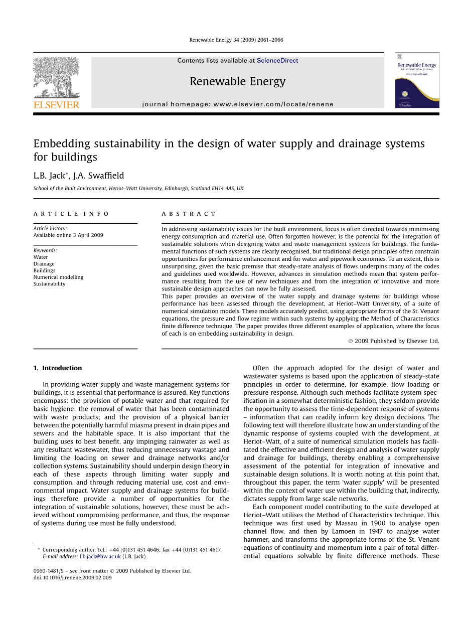 关键词:水;排水;建筑物;数值模拟;可持续性