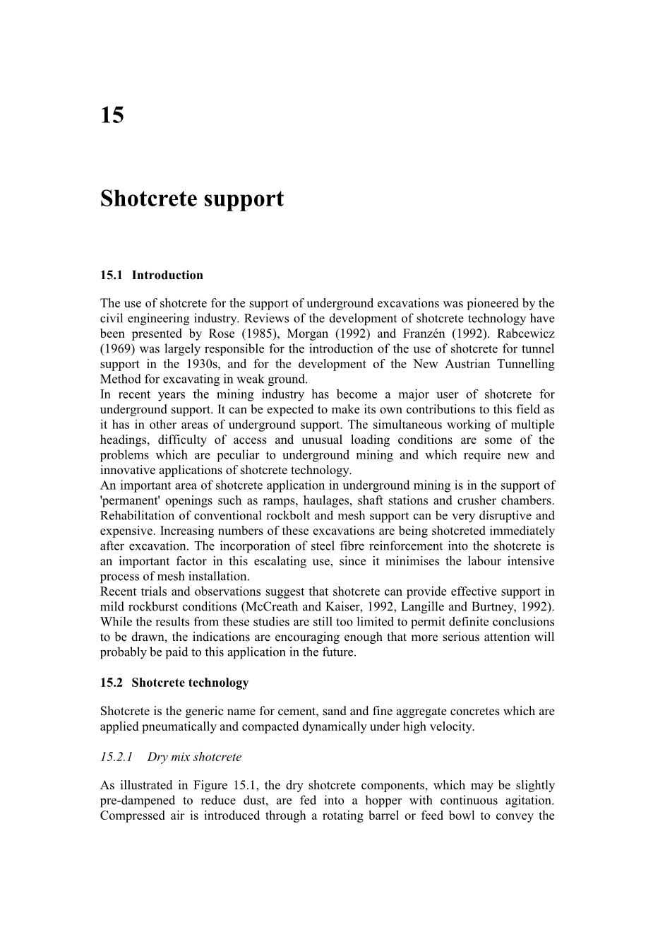 利用喷射混凝土为地下挖掘提供了技术支持,是土木工程工业的先驱。主要介绍了喷射混凝土技术的发展情况,介绍了罗斯(1985)、摩根(1992)和弗兰兹(1992)、布希维兹(1969)要负责在上世纪30年代引入喷射混凝土的使用,以及在挖掘新奥地利隧道挖掘方法的发展。