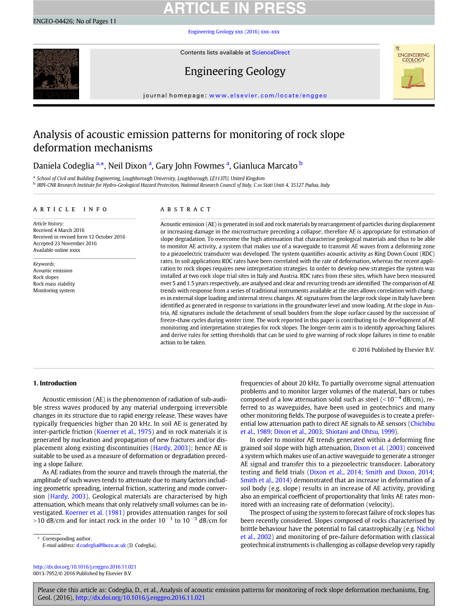 最近考虑了使用该系统预测岩石斜坡失效的前景。由脆性行为特征的岩石组成的斜坡有可能灾难性地失败(例如,Nicholet al。,2002),并且使用古典岩土工具监测失效前变形是非常有挑战性的,因为崩溃发展非常迅速(即在大规模之前非常小的位移量并迅速崩溃)。 然而,导致裂缝的成核和扩散的变形过程释放了声应力波,因此适用于作为初期故障的指标。