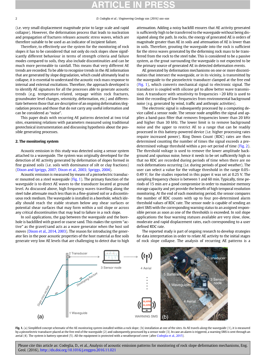 使用连接到波导的传感器系统检测本研究中的声发射。该系统最初被开发用于检测由细粒土壤(即淤泥或粘土分级优势的土壤)形成的斜坡变形产生的AE活性(Dixon和Spriggs,2007; Dixon等人,2003; Spriggs,2004)。