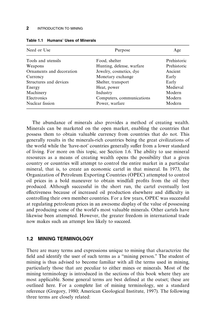 作为人类最早的努力之一—当然也是第一次有组织的工业—采矿有一个古老而古老的历史。要了解现代采矿实践,追踪采矿技术的演变是有益的,(如本章前面所指出的)这与人类的进化和文明的进步是平行的。