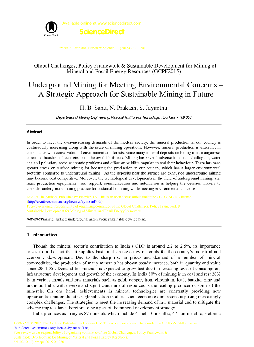 copy;2015作者。由Elsevier B.V. Peer-review出版,负责矿物和化石能源开采的全球挑战,政策框架和可持续发展组委会。