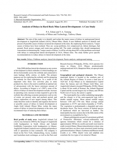 摘要:本文的研究目的是找出造成加纳的AGA矿山地下硬岩横向开发延误的原因。此研究用鱼骨分析的方法,确定了20种可能造成矿体横向开发延误的原因。通过采用Pareto分析法,找出了7个延时的主要原因。分别是:铲斗问题,低压空气,劳动力短缺,地理环境恶劣,洪水,电力中断和废物充分处理问题。研究的结论是,如果管理层致力于减少这7个主要的延误因素,应该会解决加纳AGA矿山大约80%的地下硬岩横向开发相关的延误问题。另外,此研究进一步给出了缓解该矿山横向开发延误的建议。