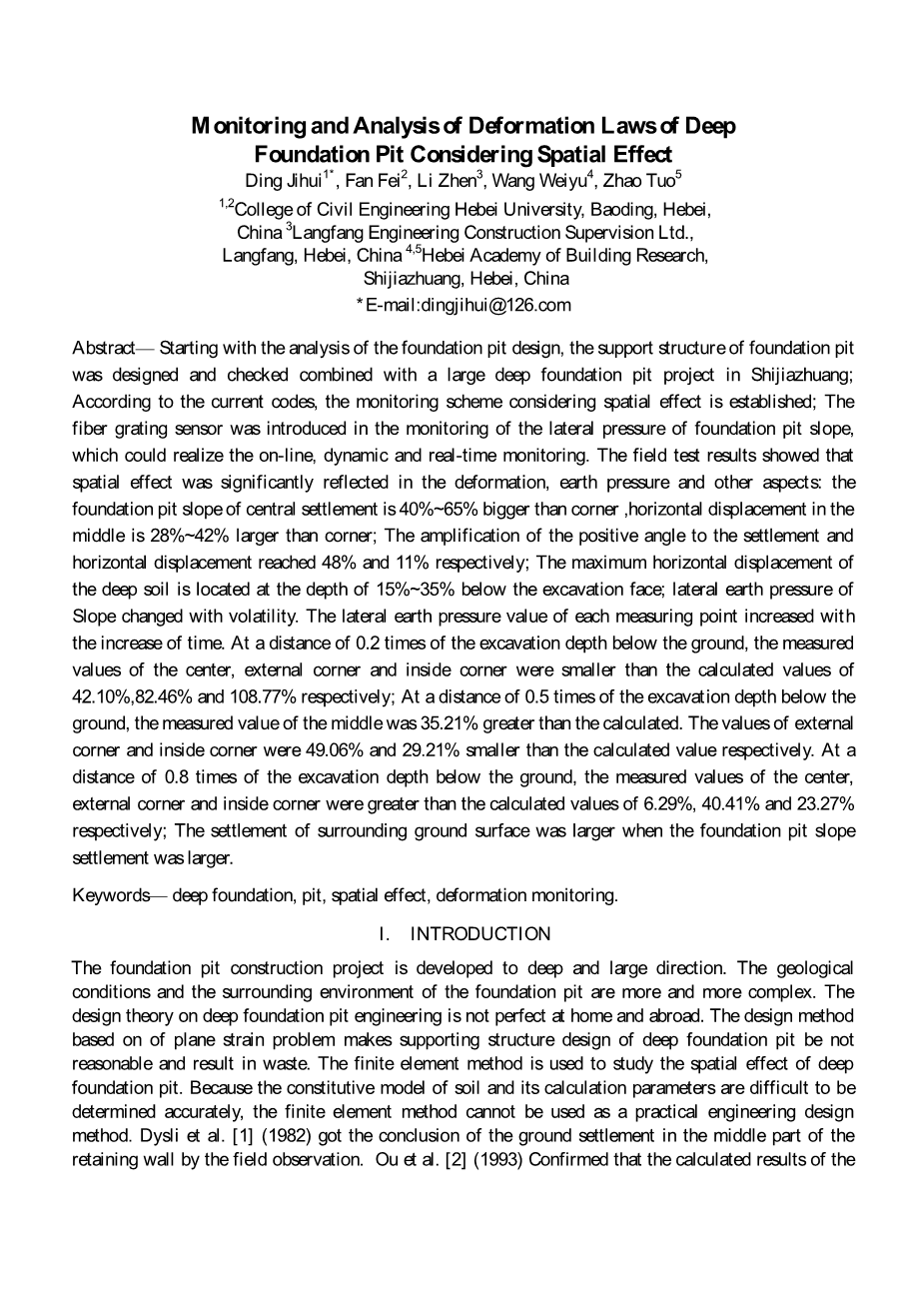 关键词 - 深基坑,坑洞,空间效应,变形监测。