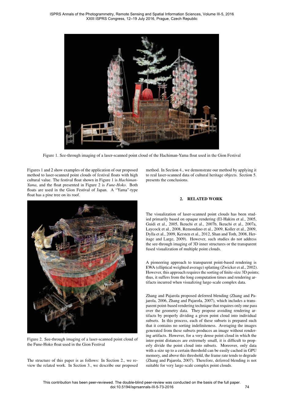 图1.在Gion Festival中使用的Hachiman-Yama浮标的激光扫描点云的透视成像