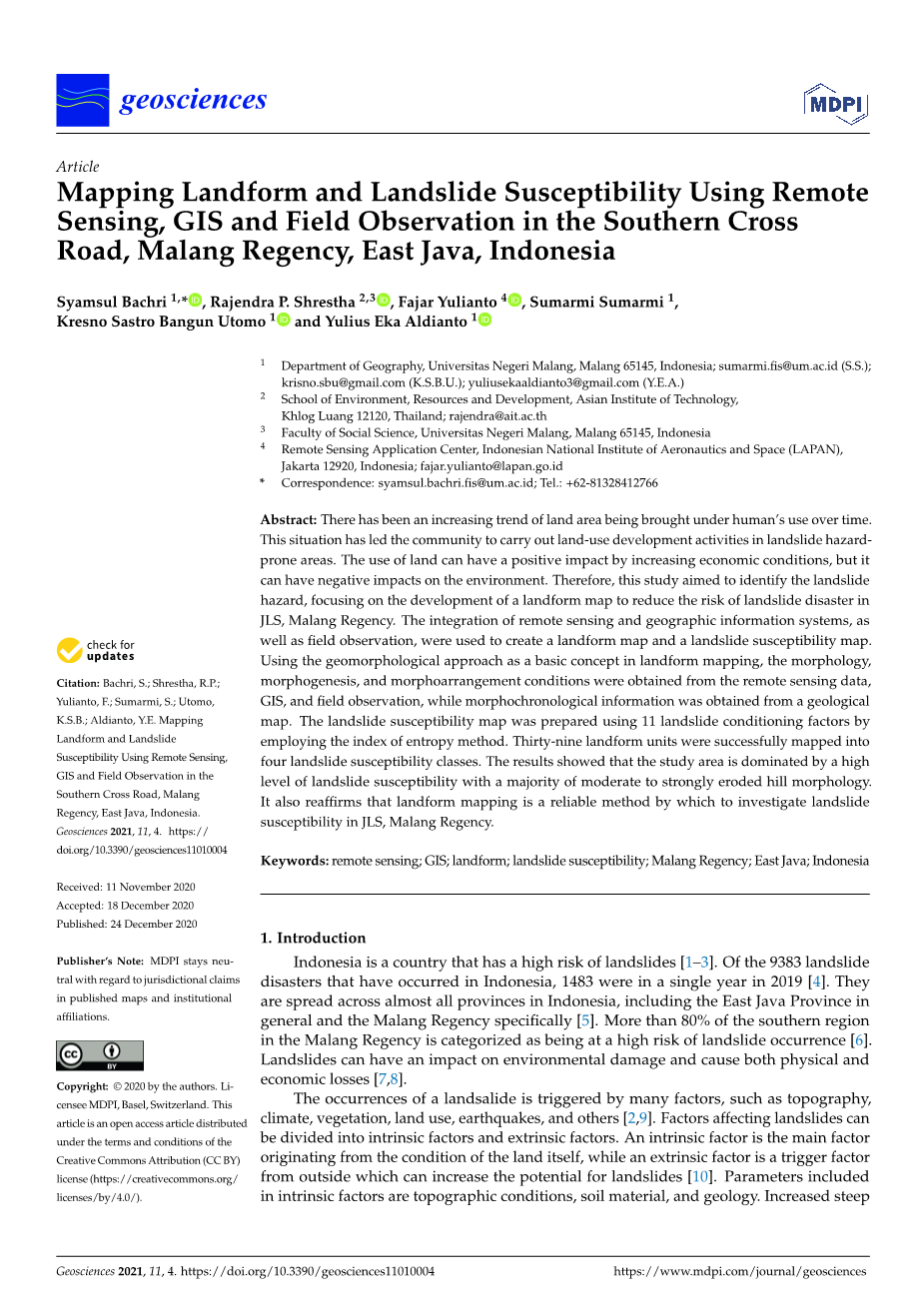 Syamsul Bachri 1,* , Rajendra P. Shrestha 2,3 , Fajar Yulianto 4, Sumarmi Sumarmi 1,Kresno Sastro Bangun Utomo 1 and Yulius Eka Aldianto 1