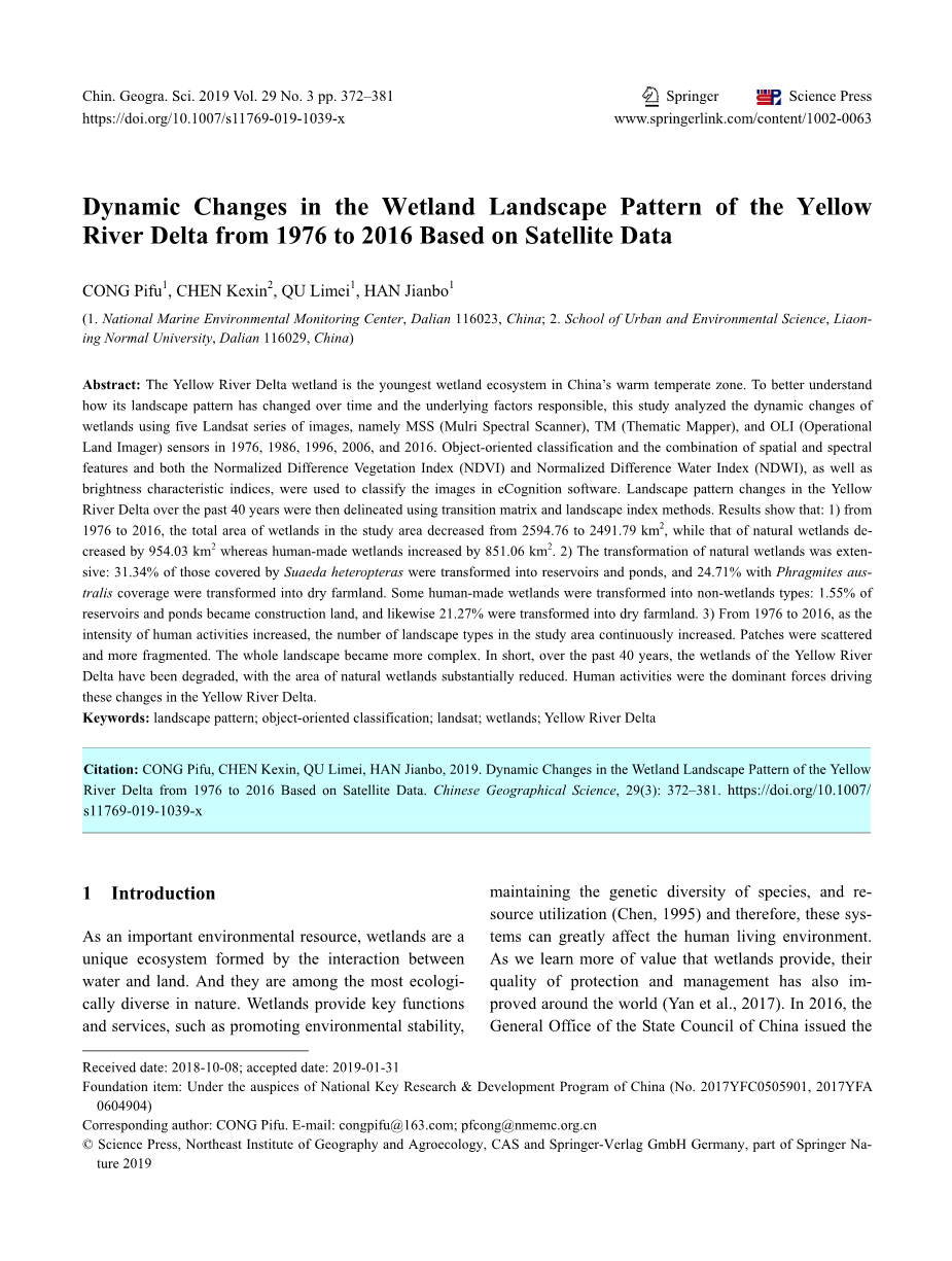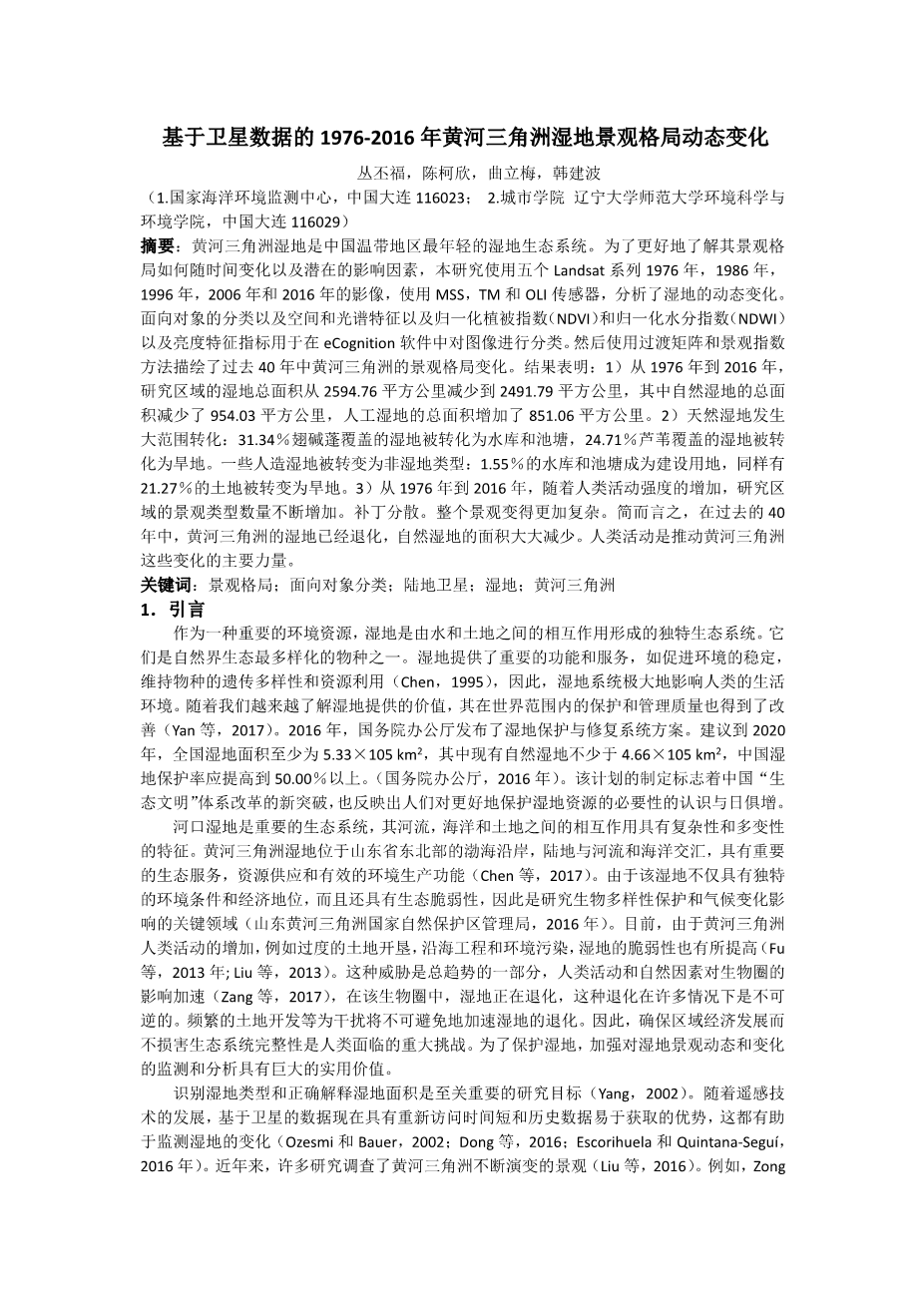 - 基于卫星数据的1976-2016年黄河三角洲湿地景观格局动态变化外文翻译资料