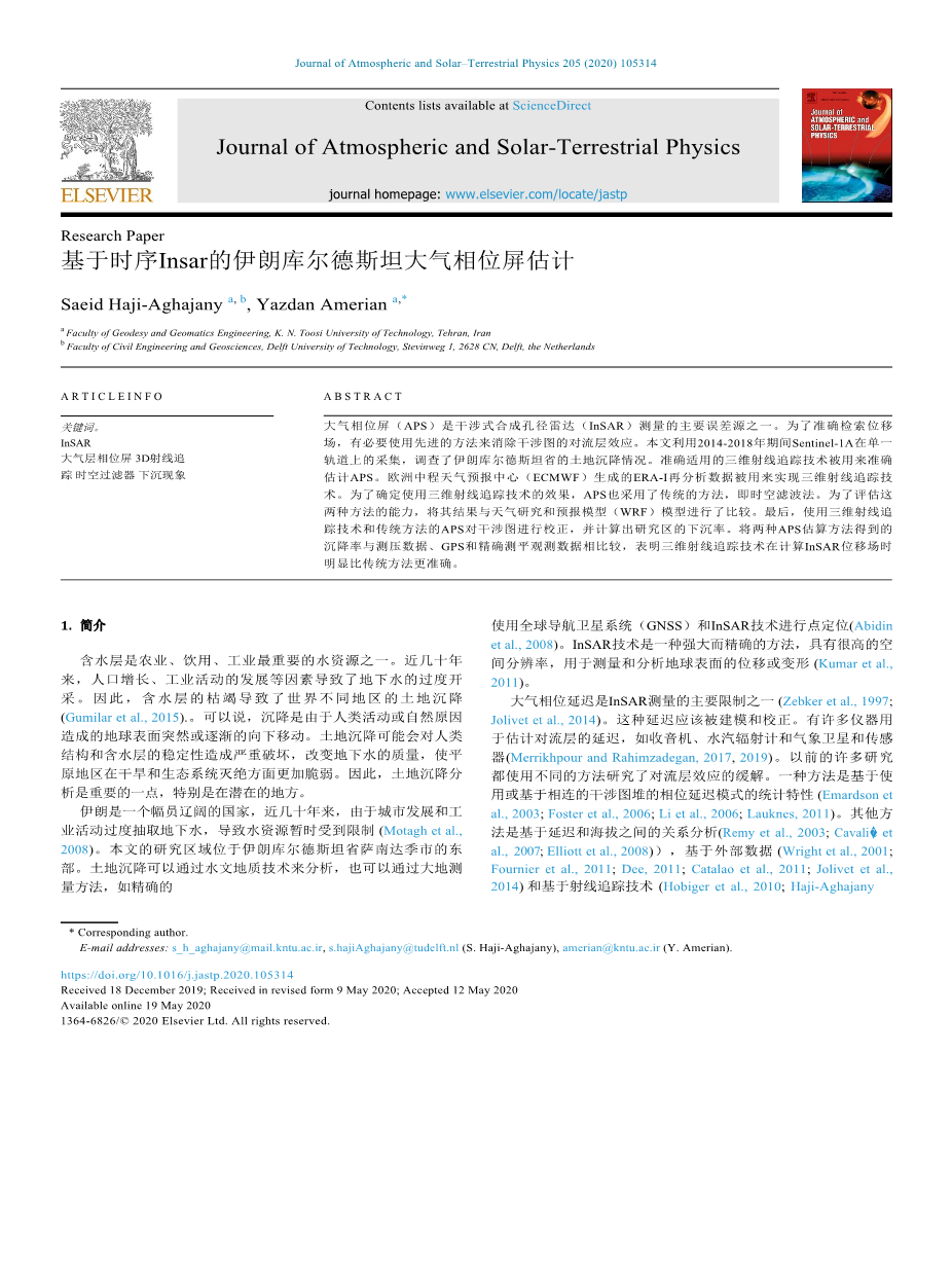 - 基于时序Insar的伊朗库尔德斯坦大气相位屏估计外文翻译资料