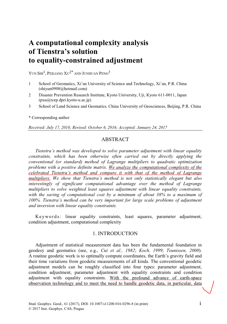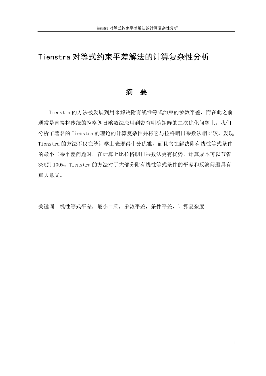 Tienstra对等式约束平差解法的计算复杂性分析外文翻译资料
