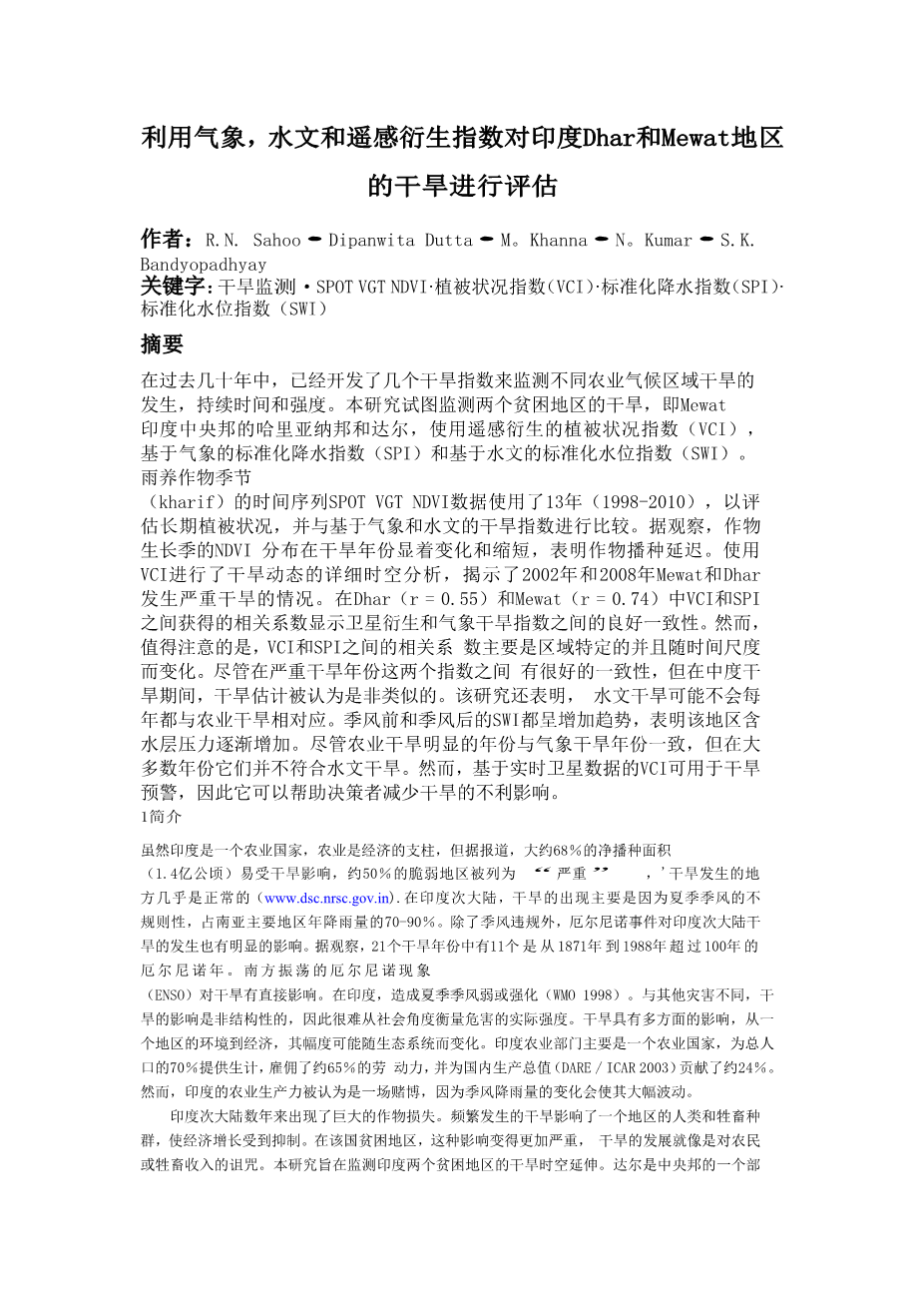 - 用NDWI和MNDWI方法检测城市地区地表水体的变化外文翻译资料