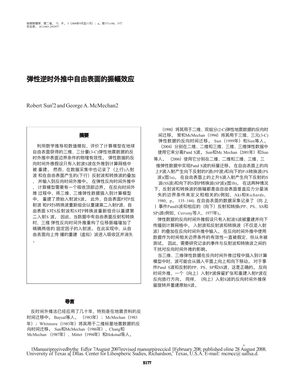弹性逆时外推中自由表面的振帐效应外文翻译资料