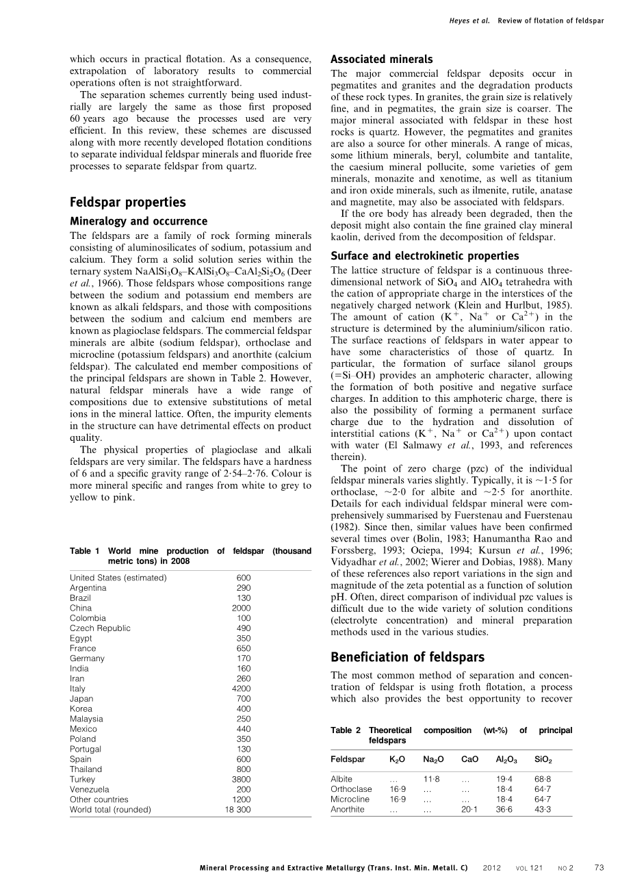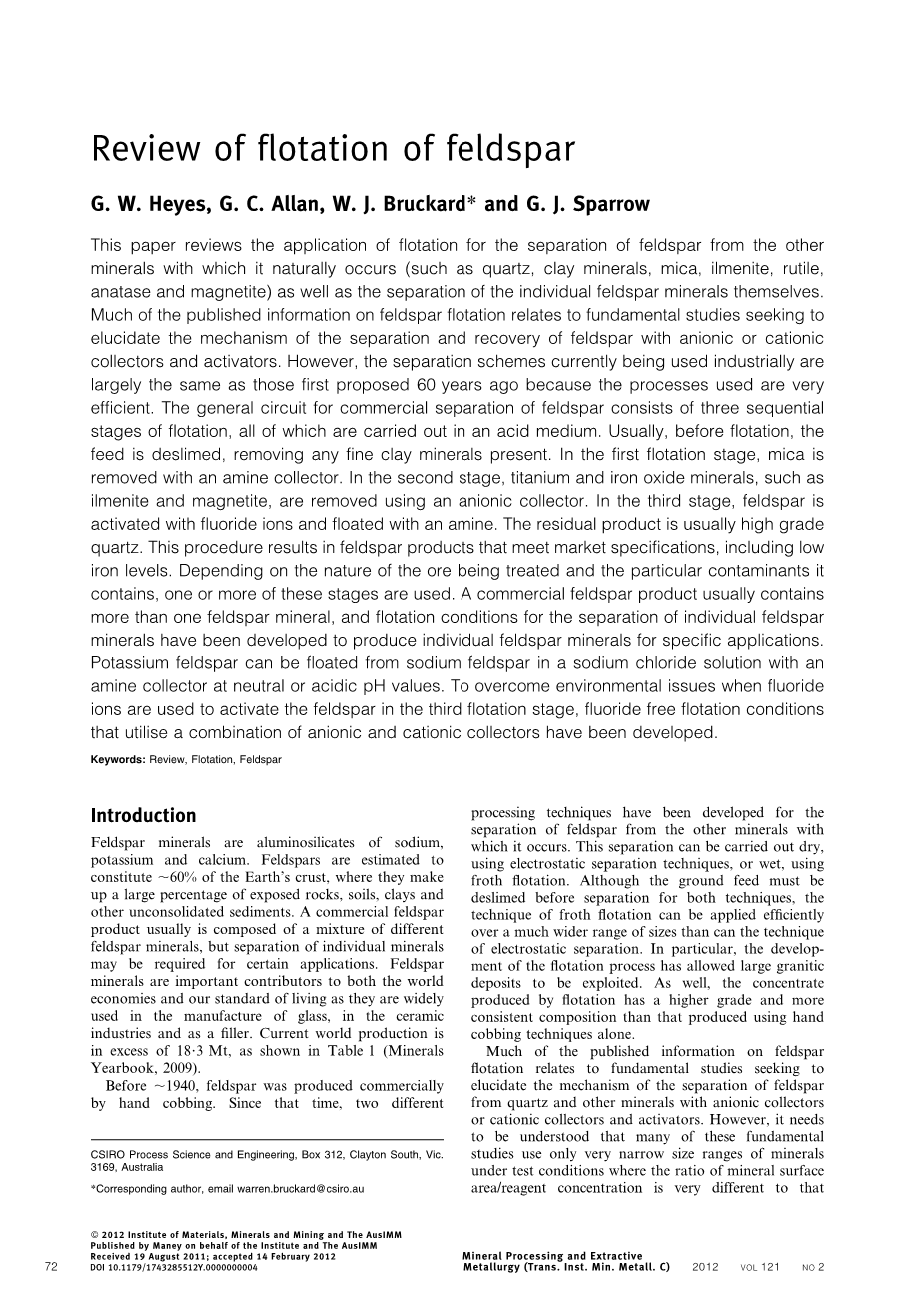 关键词:综述,浮选,长石