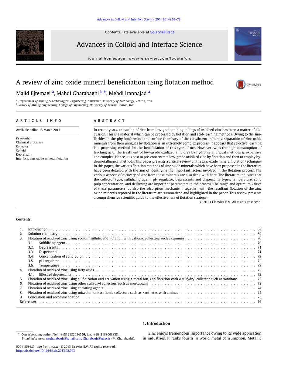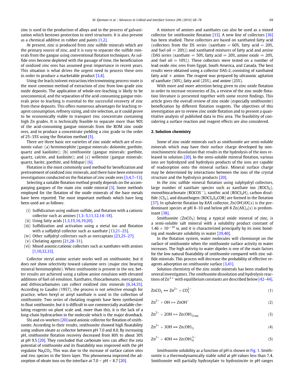 浮选法是氧化锌矿物选矿和预处理最常用的方法,已经有很多关于浮选氧化锌矿石的研究。