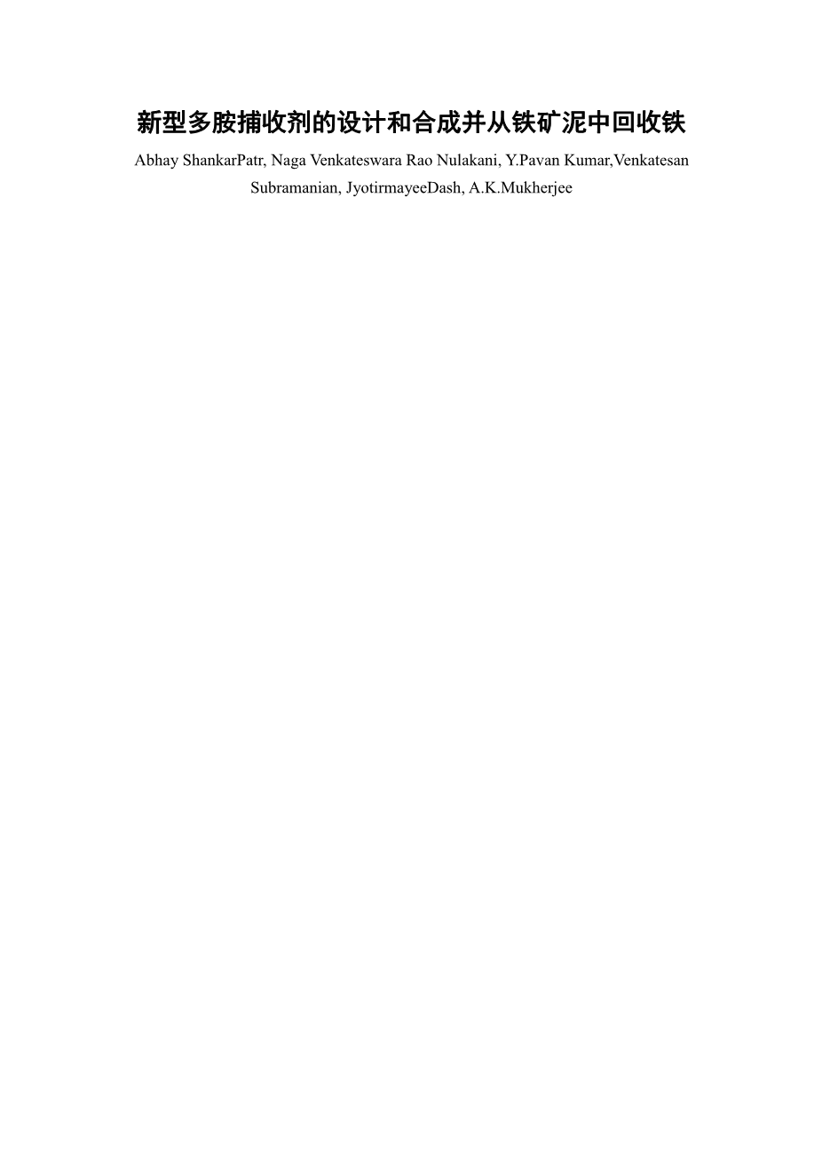 铁矿低温反浮选阴离子捕收剂的研究外文翻译资料 2022-06-27 22:27:14 英语原文共 12 页,剩余内容已隐藏,支付完成后下载完整资料 英语原文共 21 页,剩余内容已隐藏,支付完成后下载完整资料资料编号:[10599],资料为PDF文档或Word文档,PDF文档可免费转换为Word 原文和译文剩余内容已隐藏,您需要先支付 30元 才能查看原文和译文全部内容!立即支付 发小红书推广免费获取该资料资格。点击链接进入获取推广文案即可: Ai一键组稿 | 降AI率 | 降重复率 | 论文一键排版 PREVIOUS NEXT 您可能感兴趣的文章 650mV时黄铜矿浸出的动力学及过程中溶液和表 面组成的影响外文翻译资料 明矾石浸出动力学及机理研究外文翻译资料 生物浸出过程中黄铜矿钝化的控制方法外文翻译资料 酸化水玻璃作为抑制剂从矿石浮选中的应用外文翻译资料 印度东部低品味石墨的浮选研究外文翻译资料 用新型混合阴阳离子混合捕收剂从长石浮选分离锂辉石外文翻译资料 废弃荧光粉中红粉的浮选分离研究外文翻译资料 在不同的Pb Zn浮选中壳聚糖对闪锌矿的选择性抑制外文翻译资料 微波加热浸出黄铜矿的研究外文翻译资料 盐类矿物的润湿性与剪切絮凝间的相关性外文翻译资料