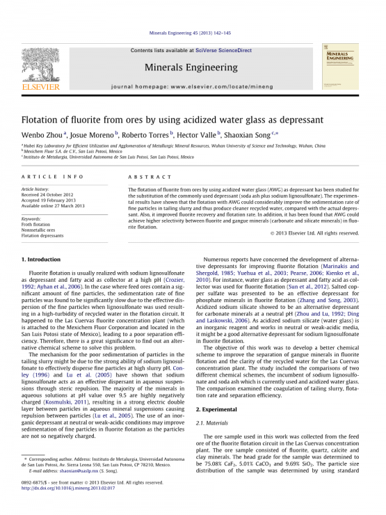 Marinakis, K.I., Shergold, H.L., 1985. Influence of sodium silicate addition on the adsorption of oleic acid by fluorite, calcite and barite. International Journal of mineral processing 14, 177–193.