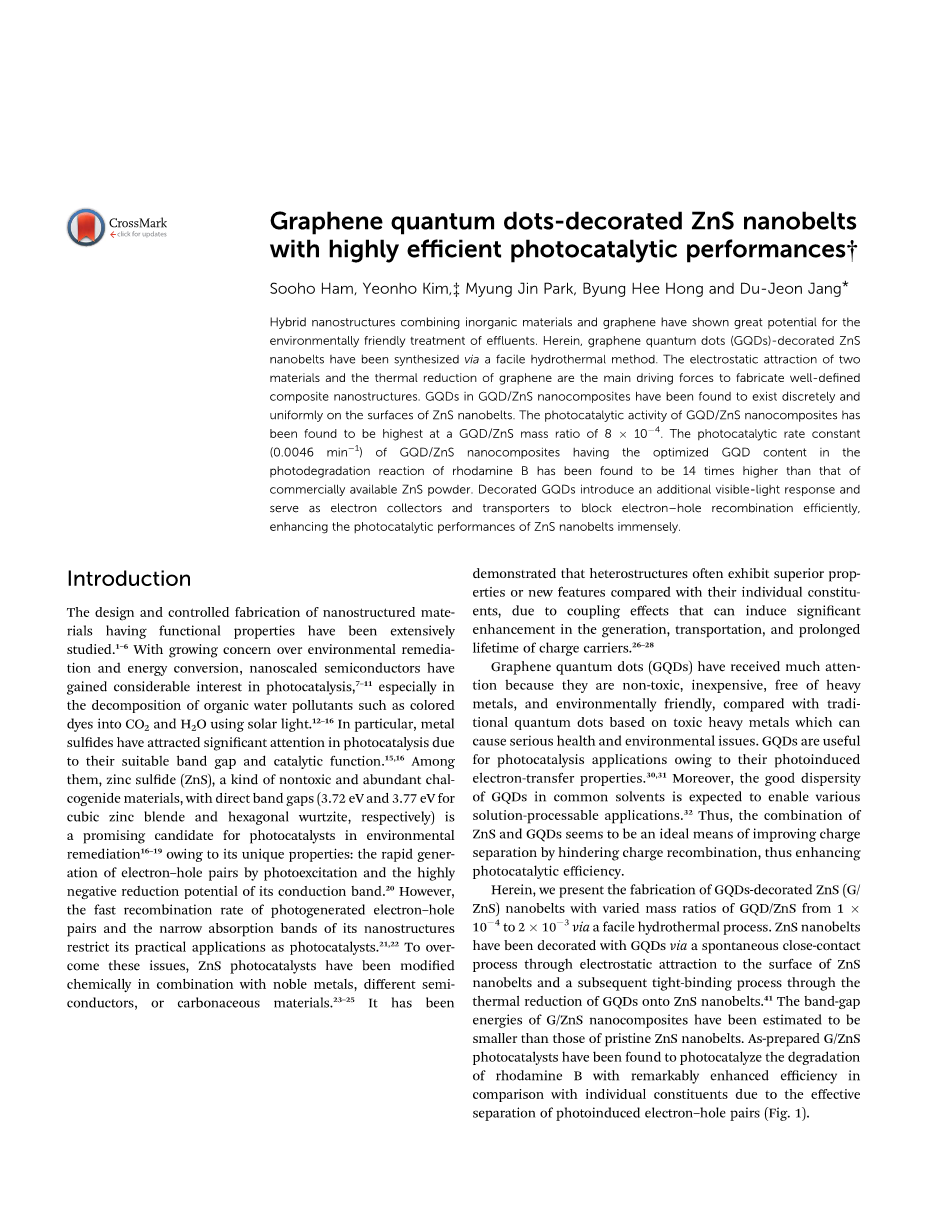 石墨烯量子点-装饰ZnS纳米带具有高效的光催化性能dagger;