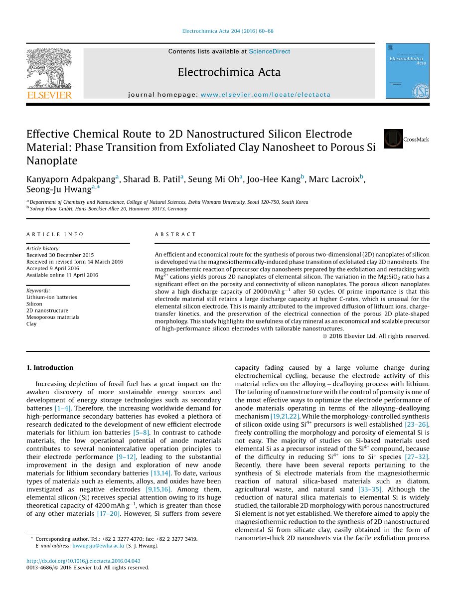 摘要:利用脱层膨润土纳米片的镁热还原反应引发相转变,开发了一种高效、经济的硅多孔二维纳米板合成方法。利用Mg2 阳离子对前驱体粘土纳米片进行剥离和重组,制备出多孔的二维单质硅纳米片。Mg:SiO2比值的变化对硅纳米板的孔隙度和连通性有重要影响。多孔硅纳米板经过50次循环后,具有2000毫安时的高放电容量。最重要的是这种电极材料在较高的c速率下仍能保持较大的放电容量,这对于单质硅电极来说是不寻常的。这主要归功于锂离子扩散的改善,以及多孔二维板状形貌对电荷转移的保存。该研究强调了粘土矿物作为高性能纳米结构硅电极前驱体的经济和较好的前景。