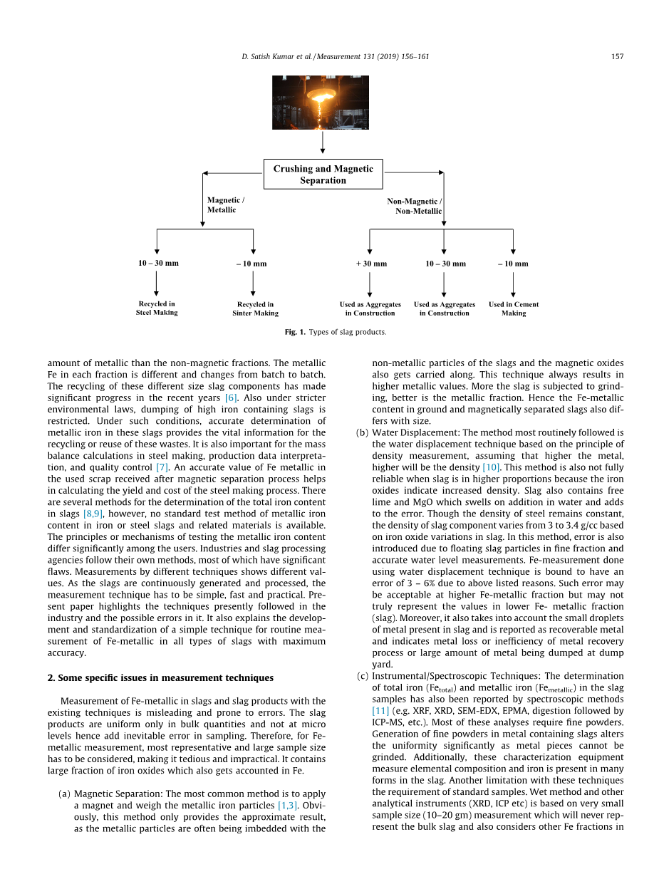 用现有技术对炉渣和炉渣产品中的铁金属进行测量具有误导性,并且容易出错。炉渣产物仅在体积上是均匀的,而在微观水平上是不均匀的,因此在采样中增加了不可避免的误差。因此,对于铁金属的测量,必须考虑最具代表性和较大的样品尺寸,这将繁琐而不切实际。它包含大部分的氧化铁,这些氧化铁也包含在铁中。