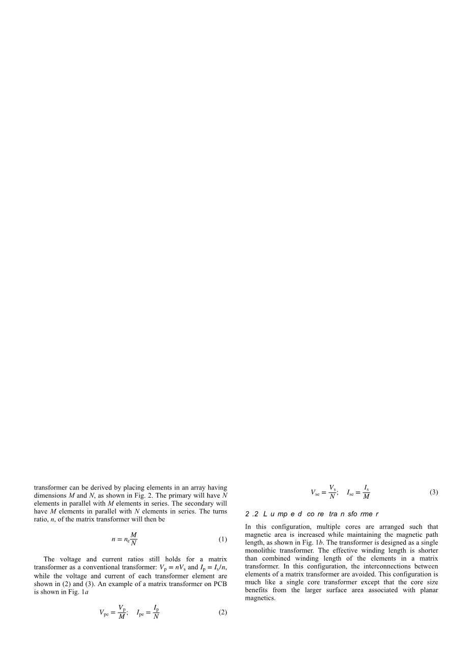 常规变压器的电压和电流比仍然保持:和,而每个变压器元件的电压和电流如(2)和(3)所示。图1a显示了PCB上矩阵变压器的一个例子