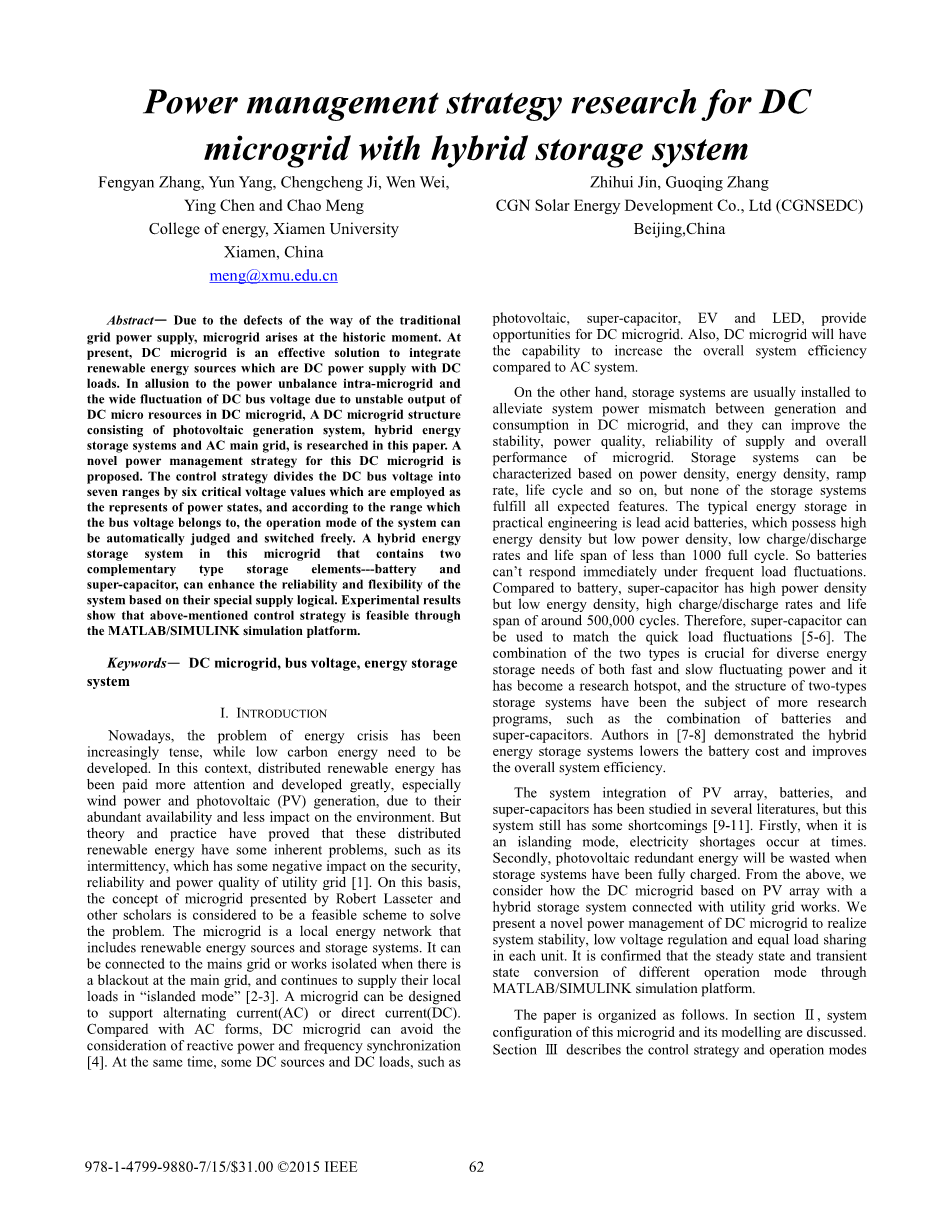 关键词:直流微电网,母线电压,储能系统