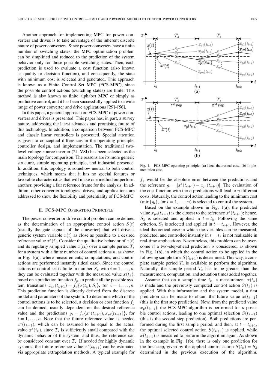 带调制的传统线性控制器受到到他们经典的反馈结构的限制。而且,带宽和控制器的鲁棒性将取决于控制器的优势系统的非线性。另一方面,FCS-MPC,使用系统的完整预测模型和反馈包含在成本函数中,不限于此受控变量的误差的大小,如分析中的第三部分的例子。事实上,它具有诸如错误可以被测量此类的功能。