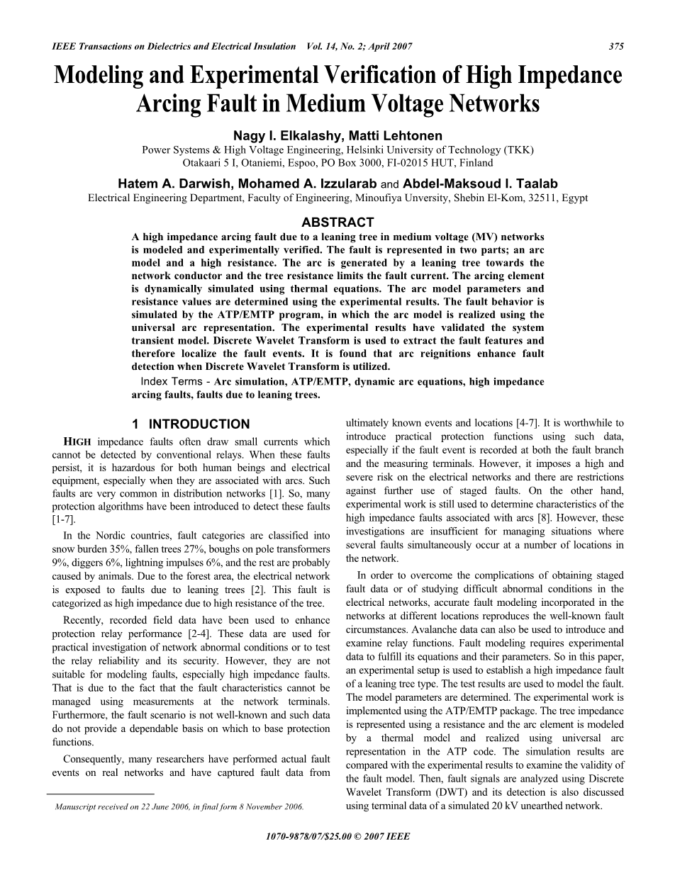Nagy I.Elkalashy,Matti Lehtonen 赫尔辛基技术大学电力系统与高压工程(TKK)