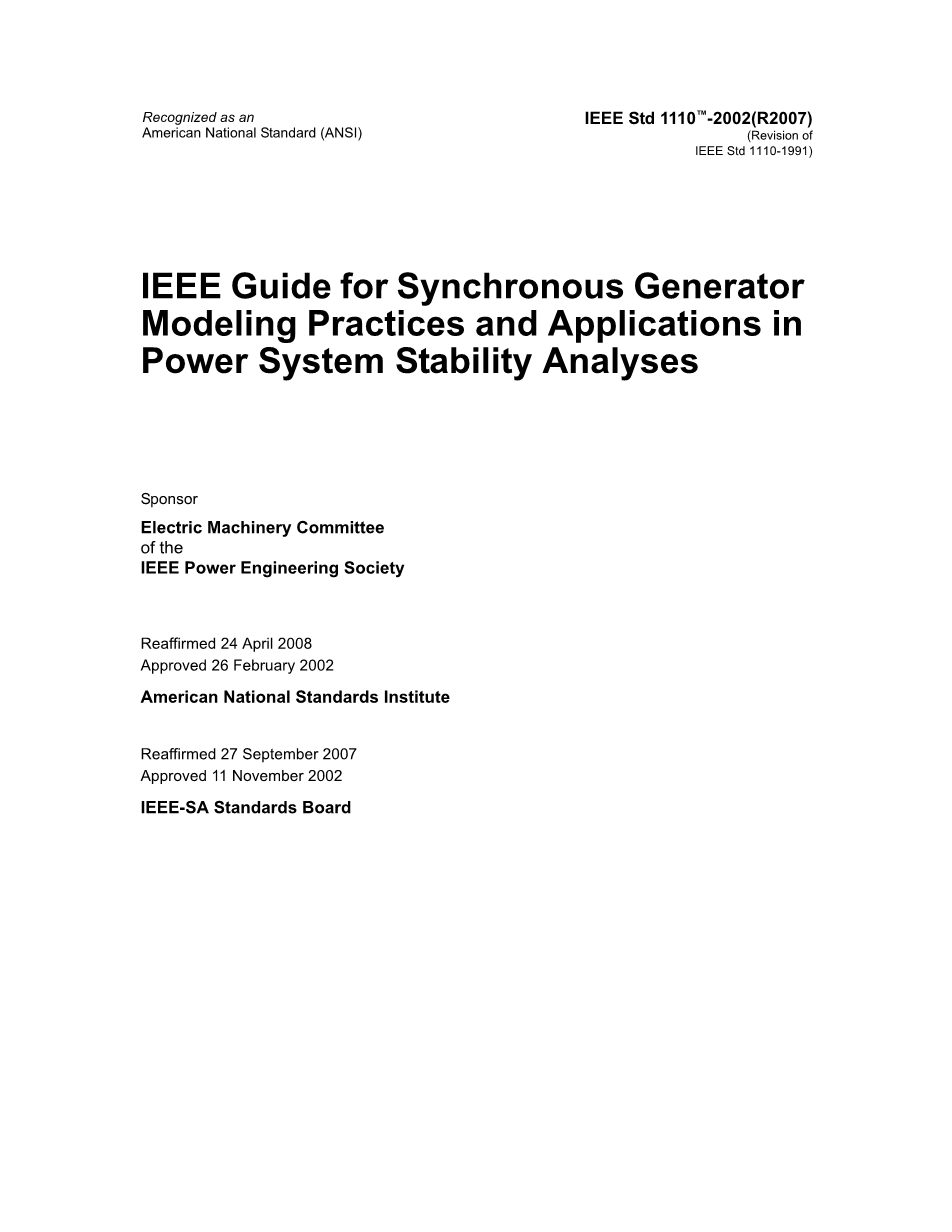同步发电机建模方法和应用IEEE指南外文翻译资料