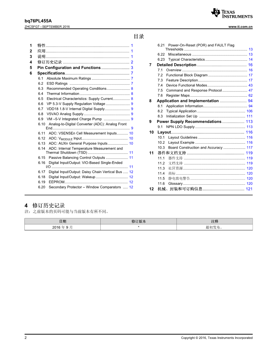 bq76PL455A 具有无源电芯平衡功能的16 节工业集成电池监视器外文翻译资料