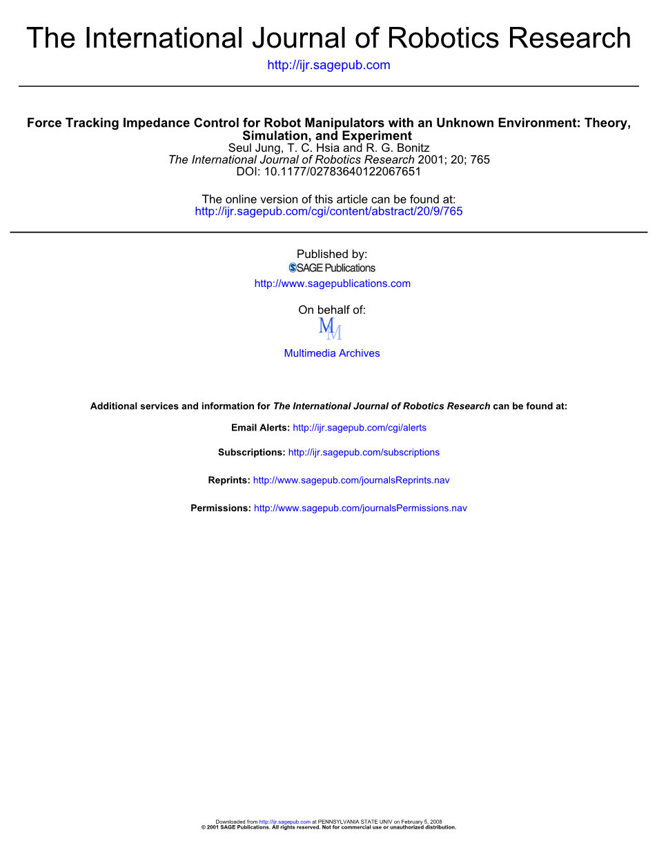 关键词:阻抗力控制;不确定性;补偿;未知环境
