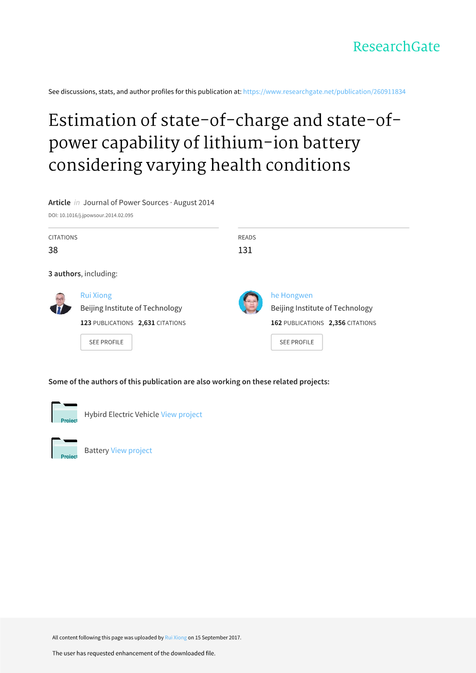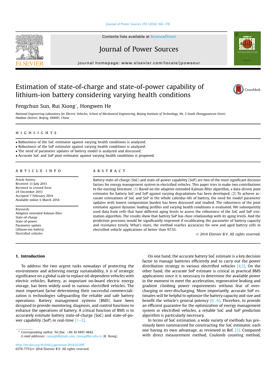 关键字:自适应扩展卡尔曼滤波器、荷电状态、功率状态、参数调整、锂离子电池、电动汽车