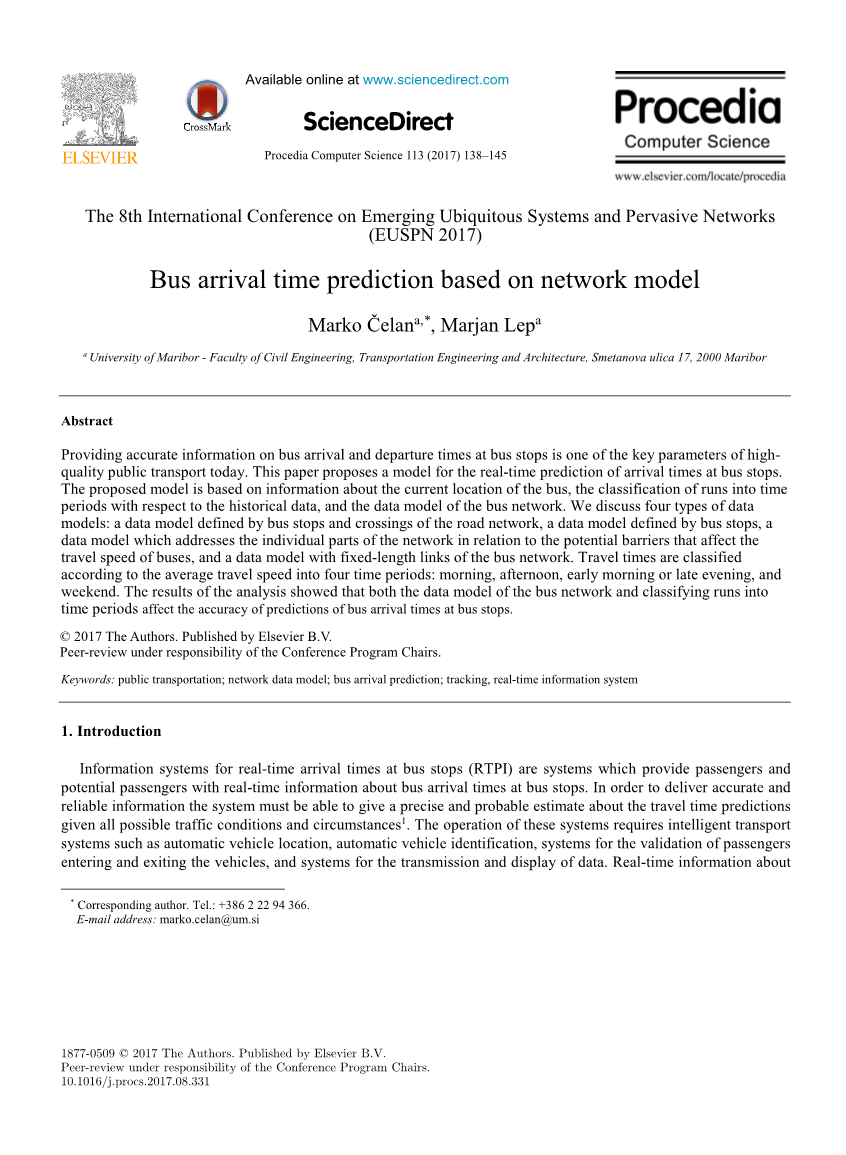 这个模型提出了一个预测公交车到达选定站时间的计算方法,基于公交车现在的位置和预设好的行驶轨道。这个模型基于预设的公交网络数据模型和根据过去平均行驶时间来划分的行驶时间段。