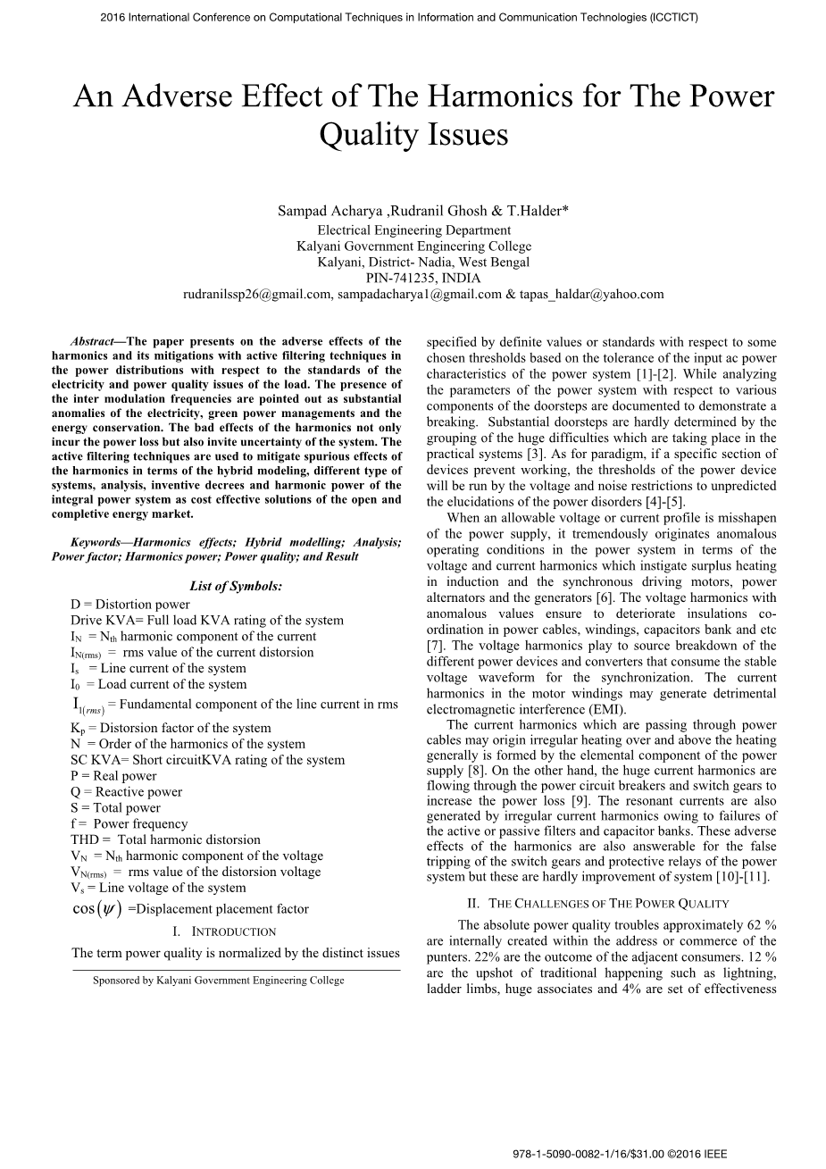 SampadAcharya,RudranilGhosh&T.Halder*电气工程系卡利亚尼政府工程学院Kalyani,District-Nadia,WestBengalPIN-741235,印度rudranilssp26@gmail.com,sampadacharya1@gmail.com和tapas_haldar@yahoo.com