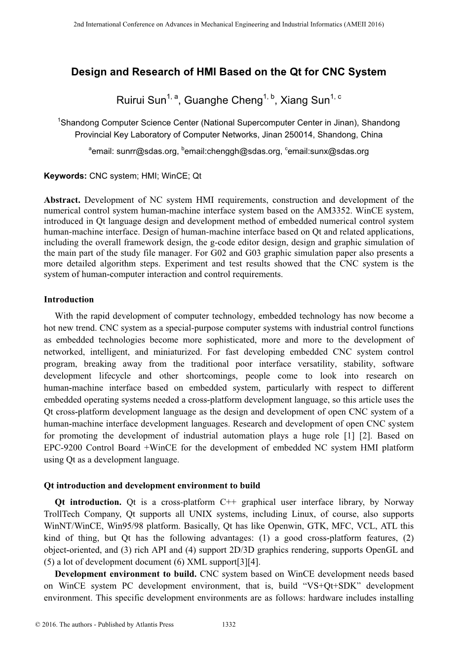 随着数控系统人机界面需求的增长,本文建立和开发一种基于AM3352的数控系统的人机界面系统。本文介绍了WinCE系统、Qt语言的设计以及开发嵌入式数控系统人机界面的方法。人机界面的设计基于Qt平台及相关的应用,包括总体框架设计、g代码编辑器设计、研究文件管理器主要部分的设计和图形仿真。对于G02和G03图形仿真纸本文也提供了更详细的算法步骤。实验和测试结果表明,数控系统是能够满足人机交互和控制要求的系统。