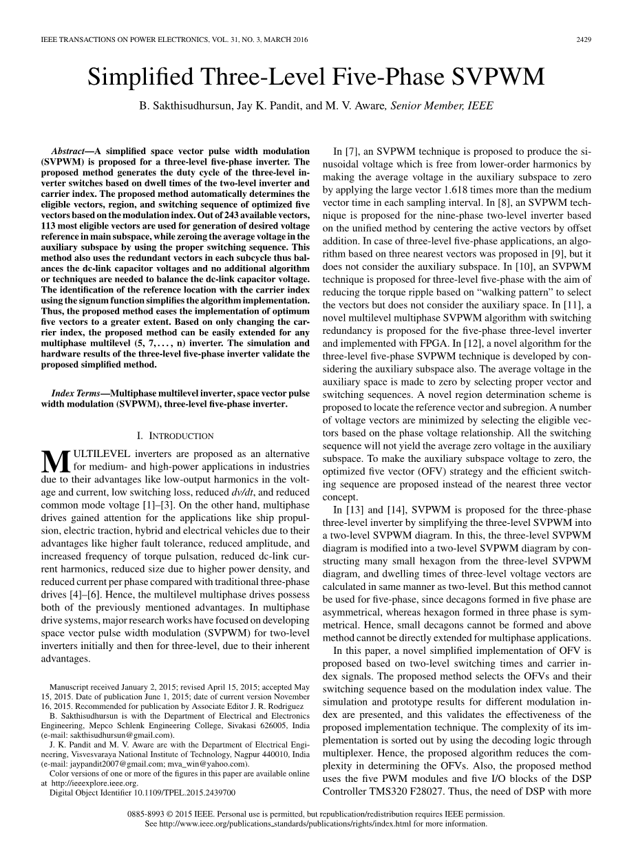 B. Sakthisudhursun, Jay K. Pandit, and M. V. Aware, Senior Member, IEEE