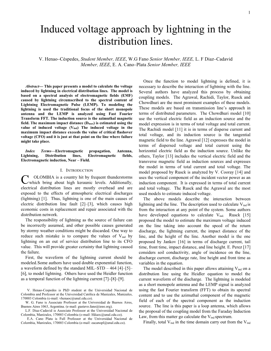 V. Henao-Ceacute;spedes,IEEE学生会员,W.G Fano IEEE会员,L. F Diaz-Cadavid