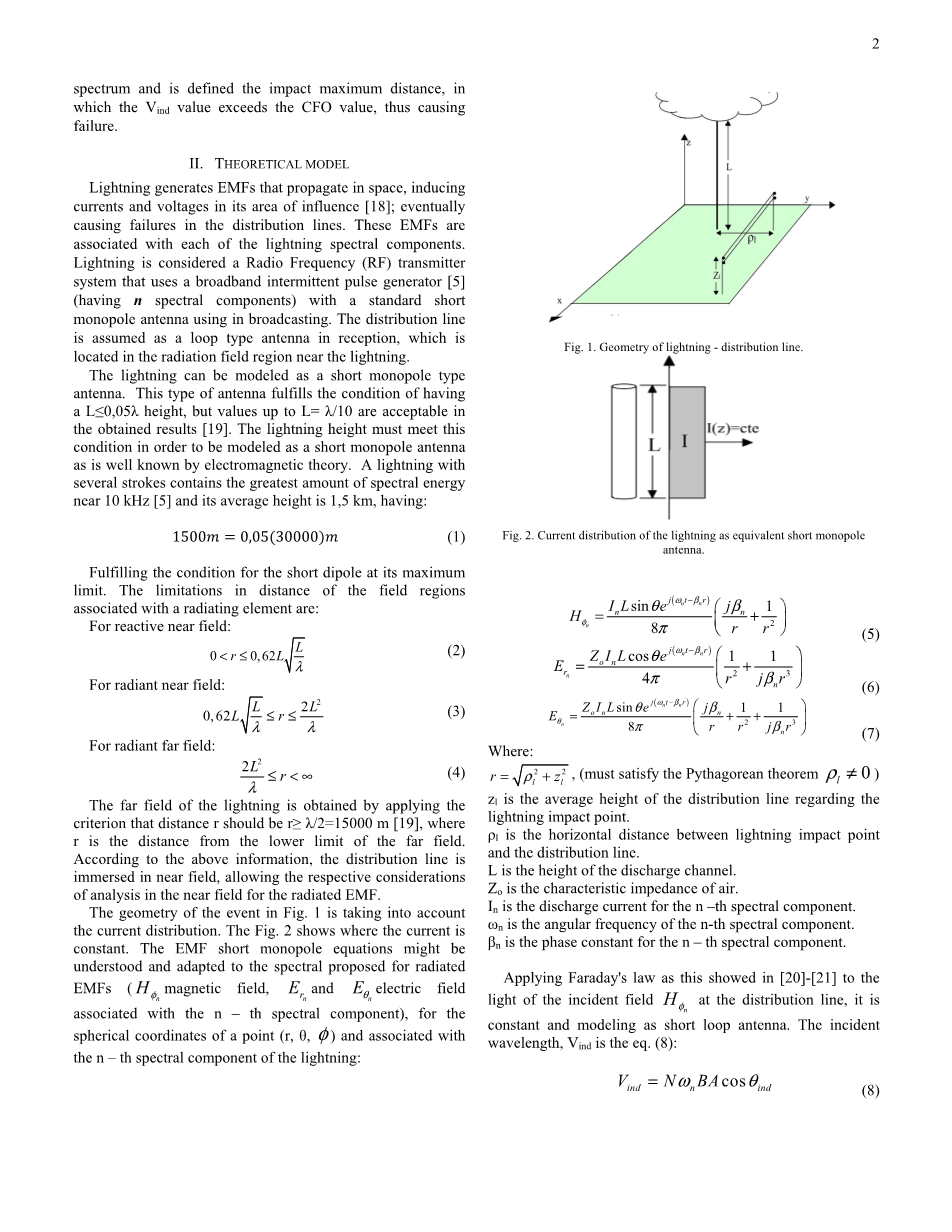 用于估计Vind的解析表达式是提出,基于一方面,在EMF的分析传播,另一方面,在与耦合中分布线被建模为环形天线。 的闪电被建模为短单极天线和LEMP信号使用快速傅里叶变换进行分析(FFT)。 方位磁场分量nHphi;是被认为是耦合感应源。