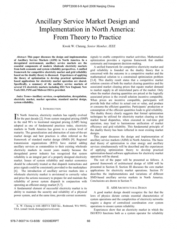 关键词:辅助服务、共同优化、放松管制、电力市场、市场运营、标准市场设计、系统可靠性