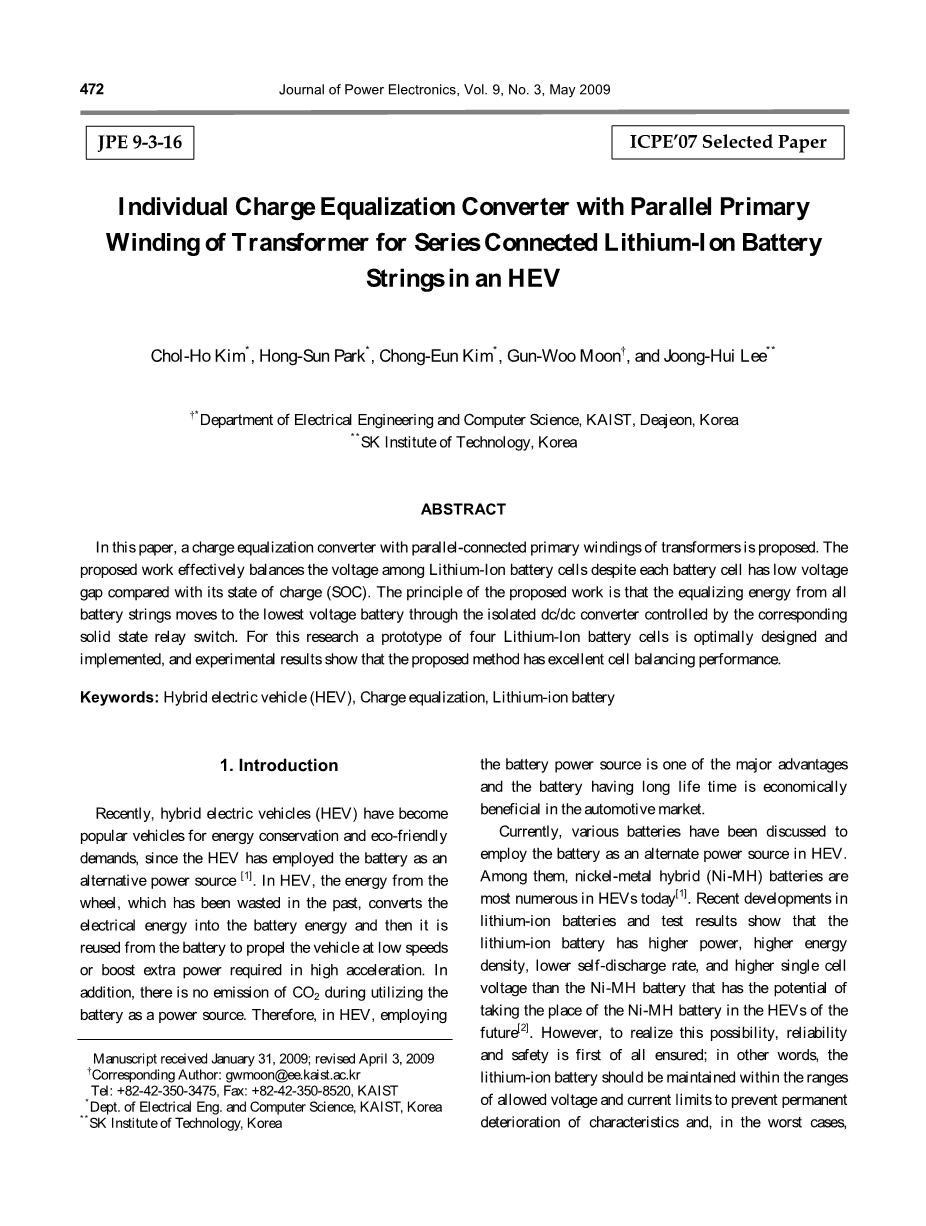 关键词:混合动力汽车(HEV),电荷均衡,锂离子电池