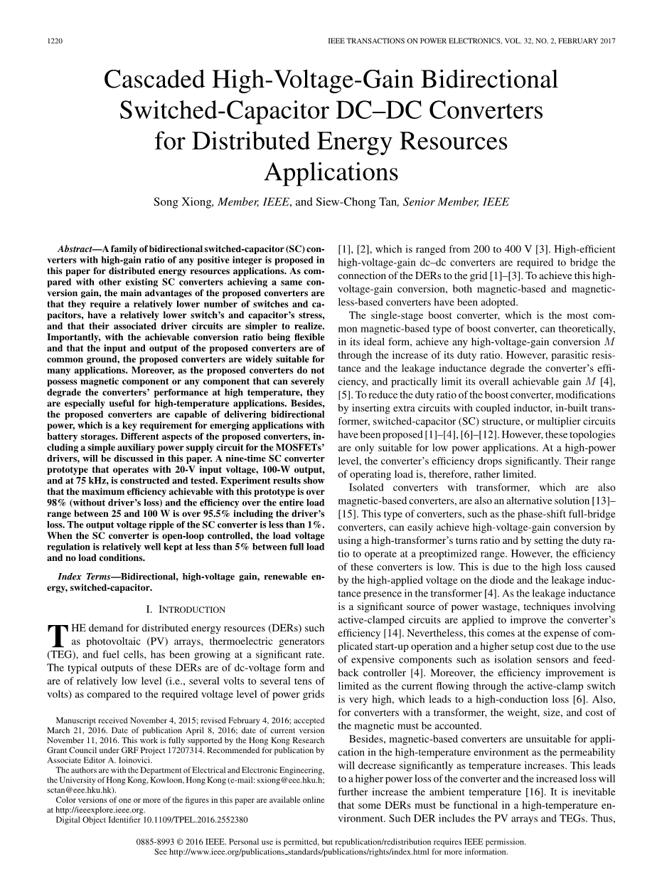 [38] 中提出了一种采用自动交织技术的 sc 变换器。交织技术将减少转换器的输出电压纹波。但是, 当应用程序需要高转换率时, 它需要大量的组件。在 [39] 中, 提出了一种基于高压增益 scs 的转换器, 该转换器是通过积累数量的 sc 电池来实现的。但是, 此转换器
