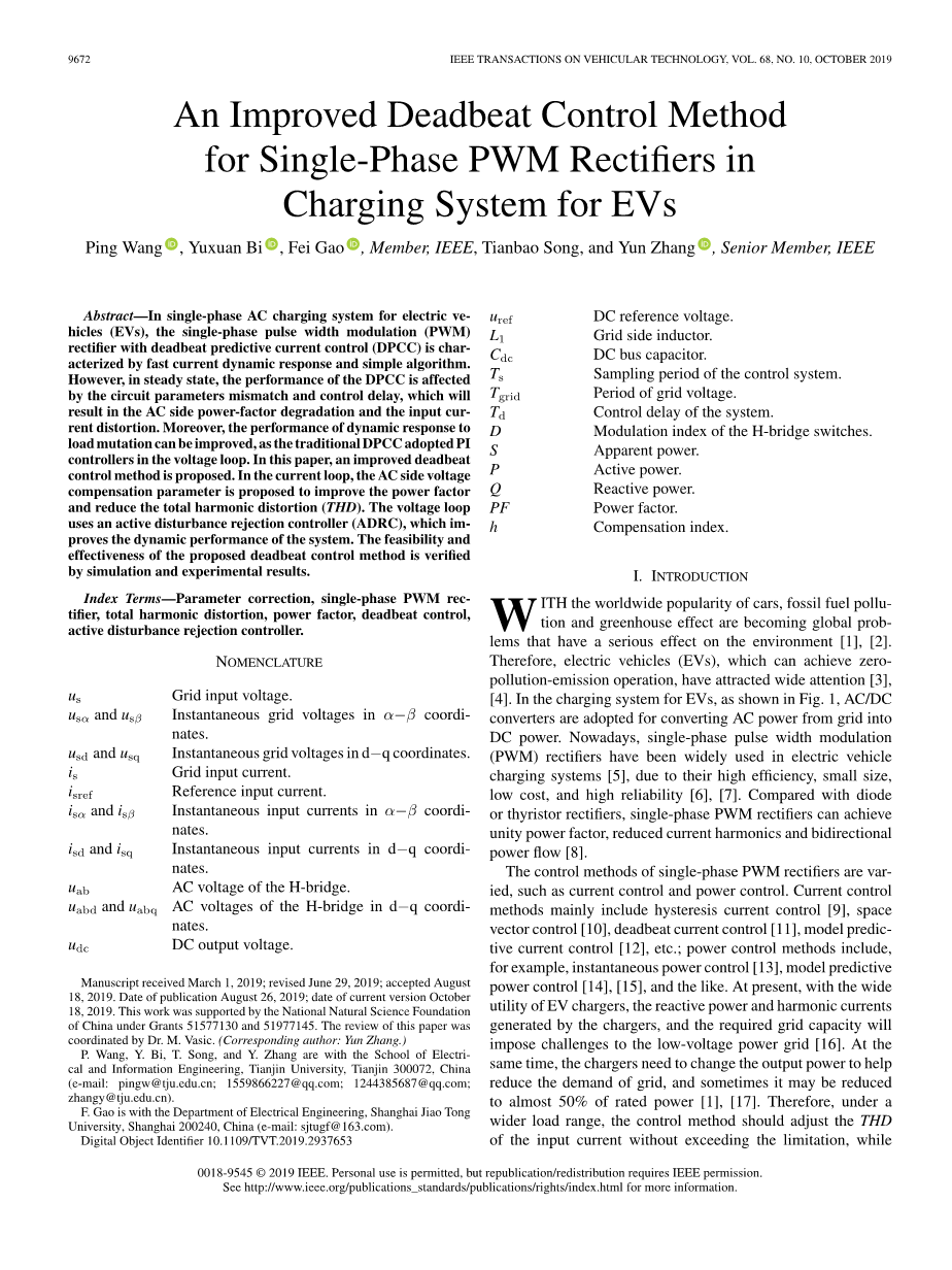 2019年3月1日收到手稿; 修订于2019年6月29日; 接受于2019年8月18日。发布日期2019年8月26日。 当前版本的日期为2019年10月18日。这项工作得到了国家自然科学基金会的支持,编号为51577130和51977145。本文的评论是由M. Vasic博士完成的。 (通讯作者:Yun Zhang)