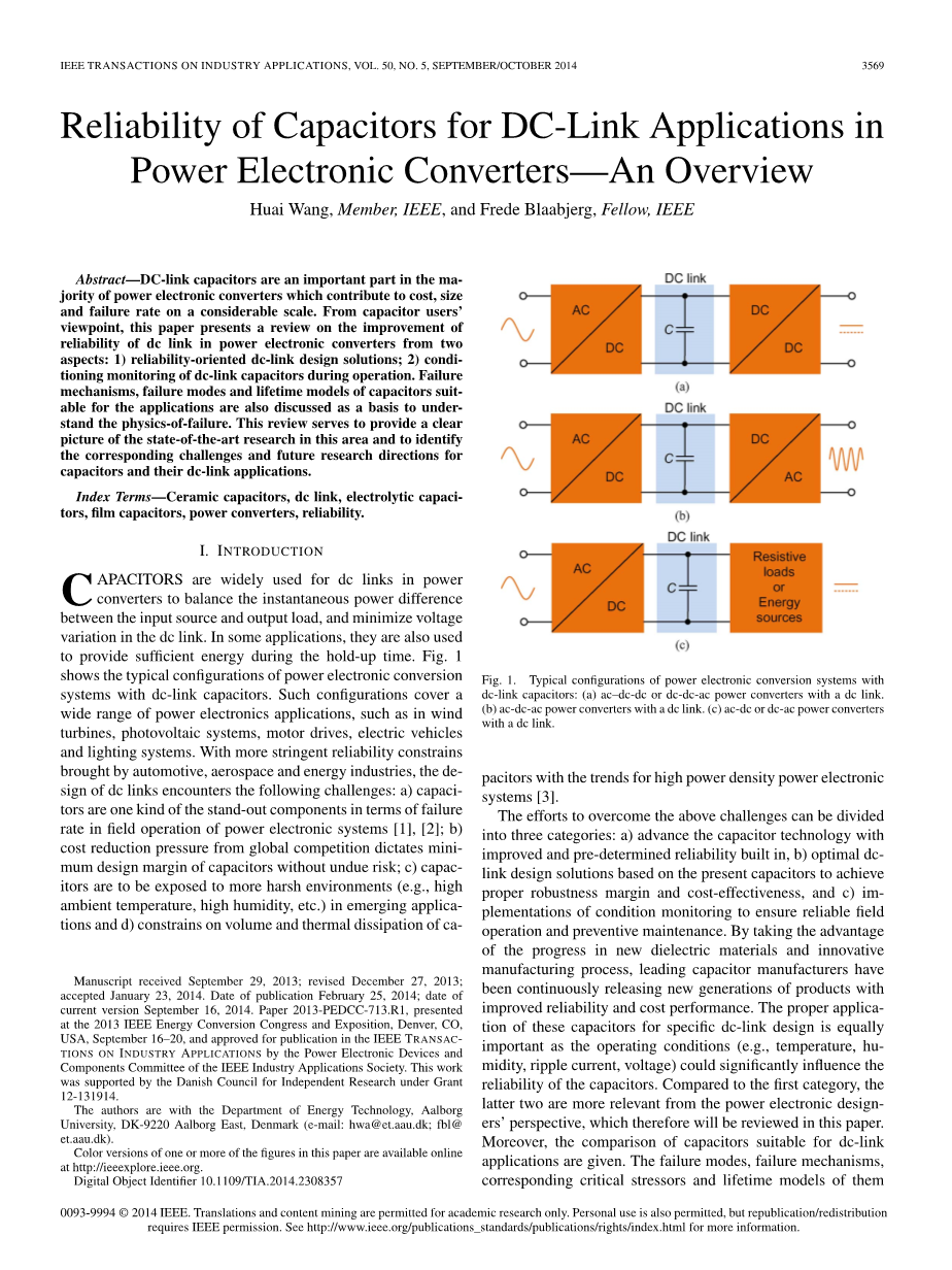 wang and blaabjerg:电力电子转换器中直流链路应用的电容器