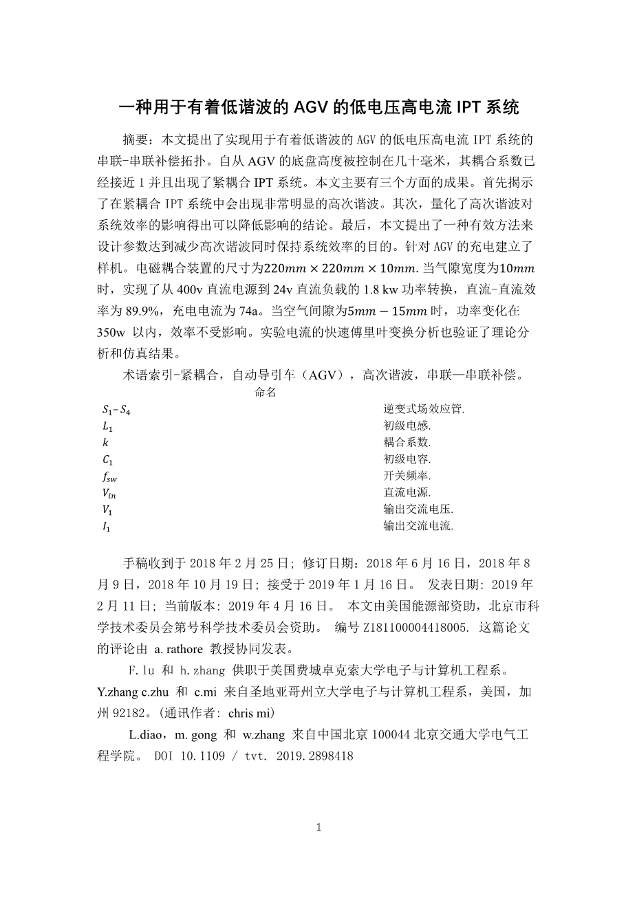 一种用于有着低谐波的AGV的低电压高电流IPT系统外文翻译资料 2022-08-09 16:42:57 英语原文共 10 页,剩余内容已隐藏,支付完成后下载完整资料 英语译文共 19 页,剩余内容已隐藏,支付完成后下载完整资料 资料编号:[238827],资料为PDF文档或Word文档,PDF文档可免费转换为Word 原文和译文剩余内容已隐藏,您需要先支付 30元 才能查看原文和译文全部内容!立即支付 发小红书推广免费获取该资料资格。点击链接进入获取推广文案即可: Ai一键组稿 | 降AI率 | 降重复率 | 论文一键排版 PREVIOUS NEXT 您可能感兴趣的文章 精益和自动化生产及物流外文翻译资料 精益自动化生产和物流外文翻译资料 精益化和自动化的制造和物流外文翻译资料 精益自动化的制造和物流外文翻译资料 生产与物流的精益化和自动化外文翻译资料 无刷直流电机闭环速度控制原型设计与实现方法外文翻译资料 无线HART网络控制外文翻译资料 基于单片机的智能鱼缸的设计外文翻译资料 基于单片机的盆花自动浇水控制系统设计外文翻译资料 基于PLC的空气循环净化系统外文翻译资料