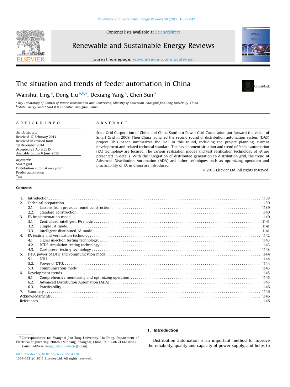 关键词:智能电网,配电自动化系统,馈线自动化,检测