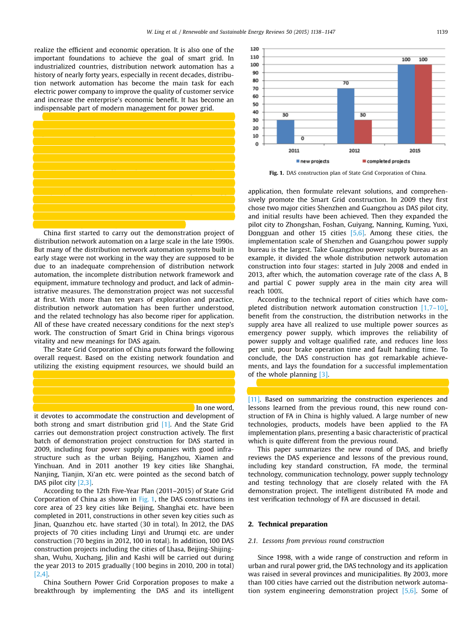 根据图1中中国国家电网公司的第12个五年计划(2011-2015),在23个核心城市如北京上海等重要地区的DAS建设在2011年完成,在其他七个核心城市如济南、泉州等的建设开始启动(总共30个)。在2012年,70个城市包括临沂、乌鲁木齐等的DAS项目正在建设过程中(70个项目在2012年启动,总共100个)。另外,100个DAS建设项目包括拉萨、北京石井山、芜湖、许昌、吉林和喀什将于2013年至2015年逐步开展(100个项目在2010年启动,总共200个)[2,4]。
