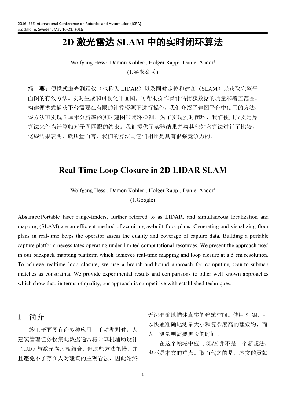2D激光雷达SLAM中的实时闭环算法外文翻译资料