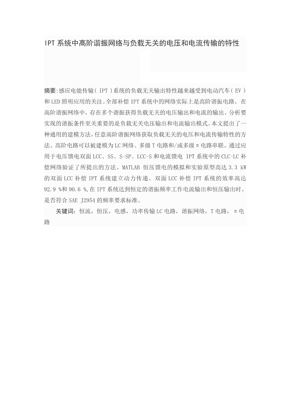 基于IPT系统的恒压/恒流传输特性分析外文翻译资料 2021-12-13 21:53:38 英语原文共 16 页 英语原文共 26 页资料编号:[5522] 原文和译文剩余内容已隐藏,您需要先支付 30元 才能查看原文和译文全部内容!立即支付 发小红书推广免费获取该资料资格。点击链接进入获取推广文案即可: Ai一键组稿 | 降AI率 | 降重复率 | 论文一键排版 PREVIOUS NEXT 您可能感兴趣的文章 精益和自动化生产及物流外文翻译资料 精益自动化生产和物流外文翻译资料 精益化和自动化的制造和物流外文翻译资料 精益自动化的制造和物流外文翻译资料 生产与物流的精益化和自动化外文翻译资料 无刷直流电机闭环速度控制原型设计与实现方法外文翻译资料 无线HART网络控制外文翻译资料 基于单片机的智能鱼缸的设计外文翻译资料 基于单片机的盆花自动浇水控制系统设计外文翻译资料 基于PLC的空气循环净化系统外文翻译资料