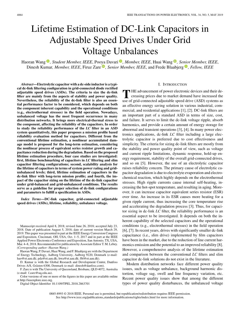 Haoran Wang , Student Member, IEEE, Pooya Davari , Member, IEEE, Huai Wang , Senior Member, IEEE, Dinesh Kumar, Member, IEEE, Firuz Zare , Senior Member, IEEE, and Frede Blaabjerg , Fellow, IEEE