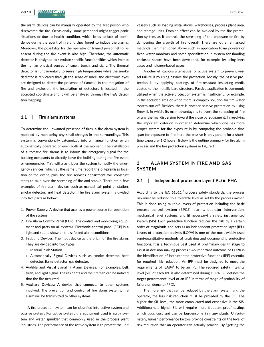 炼油厂工艺区的控制措施。本研究中的配置(通过操作员的手动操作)通过考虑单个列车或过程线的功能精炼厂,F&G假警报/假行程作为自动系统的一部分的影响将是显著的,并且有可能降低工厂的整体可用性。产生不必要的关闭的F&G系统将减少系统中的操作者信心,这样的系统往往被抑制或忽略。反过来,这将减少F&G系统的有效性,以有效地缓解不良事件。