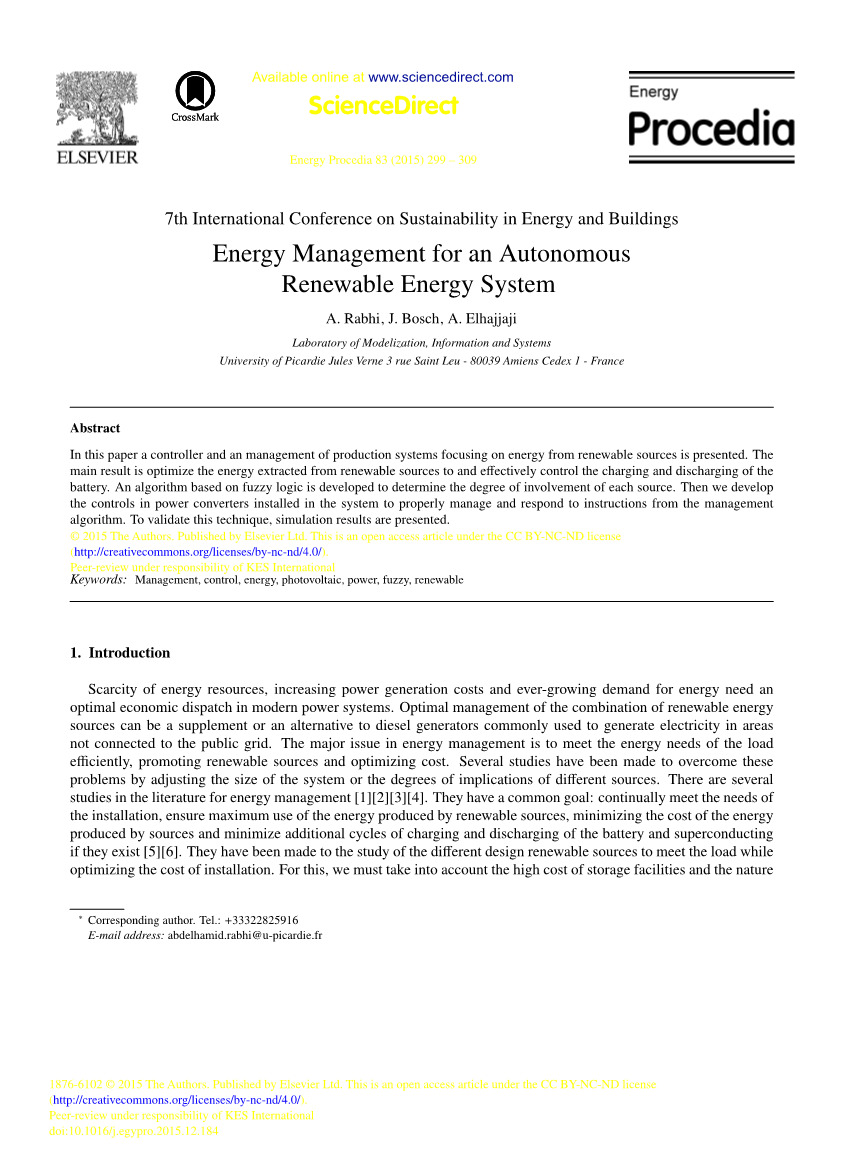 自主可再生能源系统的能源管理